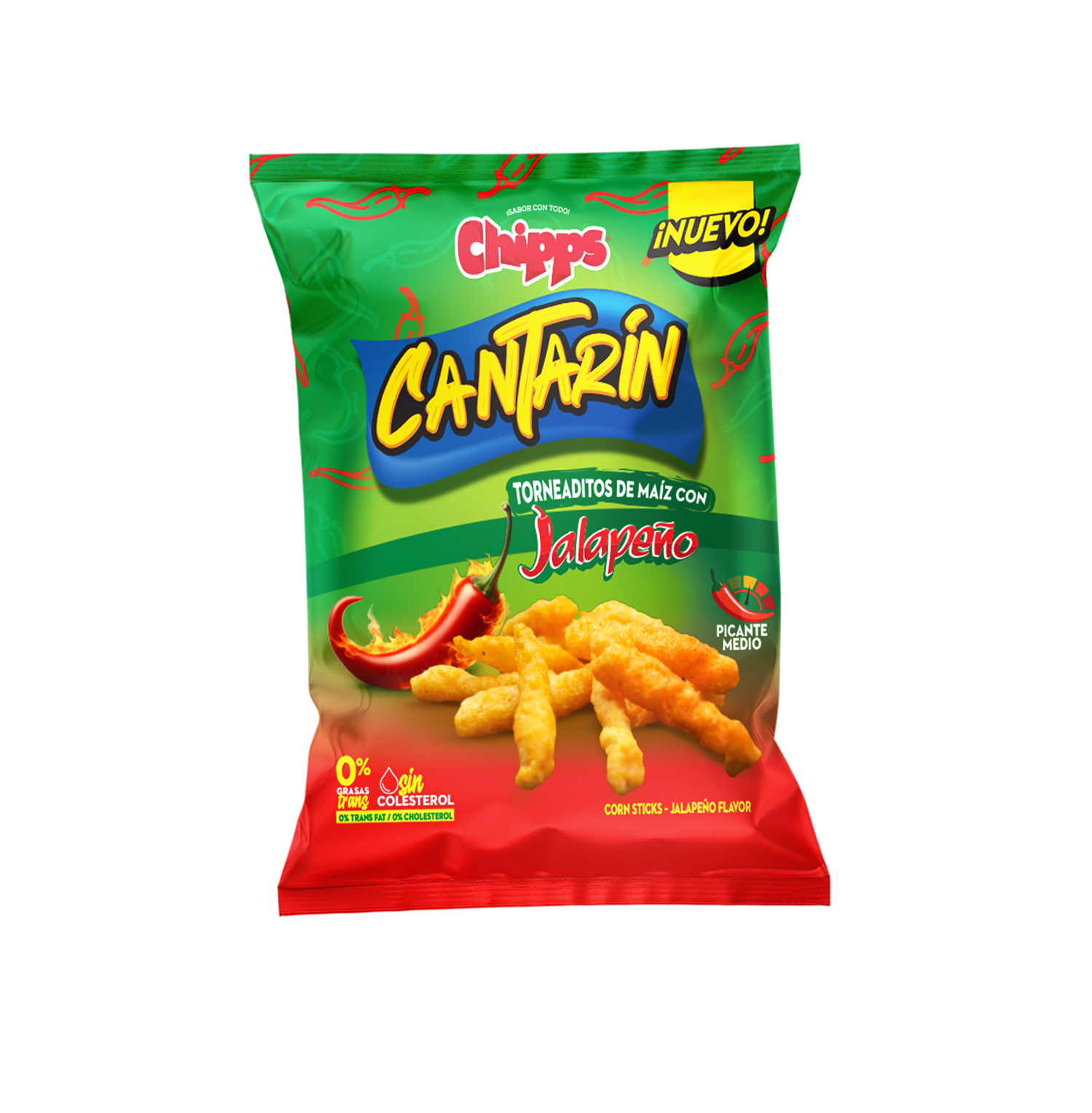 El toque picante perfecto que buscabas. Crujientes torneaditos de maíz con el sabor auténtico del jalapeño. ¡Pica medio pero sabe completo!
